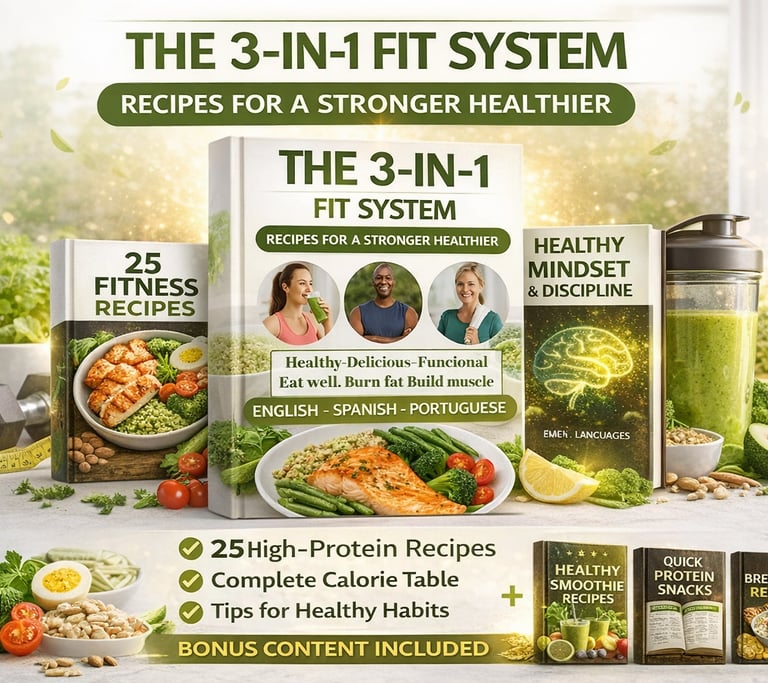 The 3-In-1 Fit System is a smart, fully interactive digital e-book developed for people who want to eat better, burn fat, and build healthy habits in a simple and practical way.